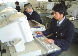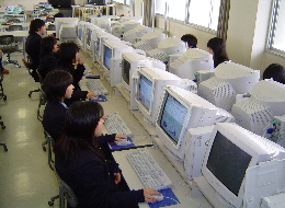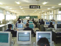 会社の模擬組織の中で,コンピュ−タを使った学習。