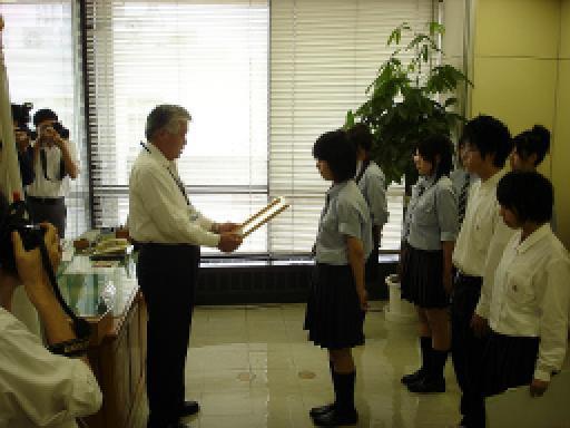 去る7月26日,岡山県教育委員会教育長から,教育長室で採択通知書を受け取りまし