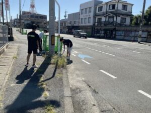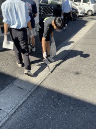 整美委員会主催で校外のごみを拾う活動を始めました。整美委員とボランティア約50名で4つのコースに分かれて活動をしました。西大寺駅方面は多くのごみを回収できました。