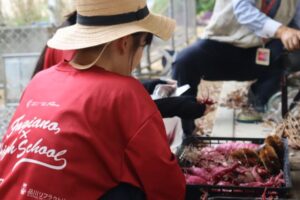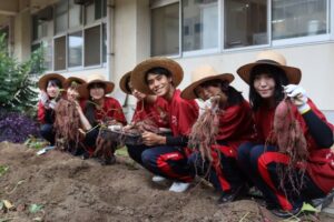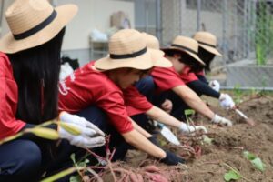 今年の商品開発班は学校の敷地の一角をお借りしてサツマイモを育てています。サミバ計画と名付けました。