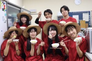 現地には、堆肥の受け取りに協力いただいたカンコー学生工学研究所、商品開発で協力いただいているおかやまコープ、タルトのお店のSTYLEの皆様にもお越しいただきました。収穫後のサツマイモの一部を蒸し、味を確認したところ、甘みが強くてとても美味しく、安心しました。