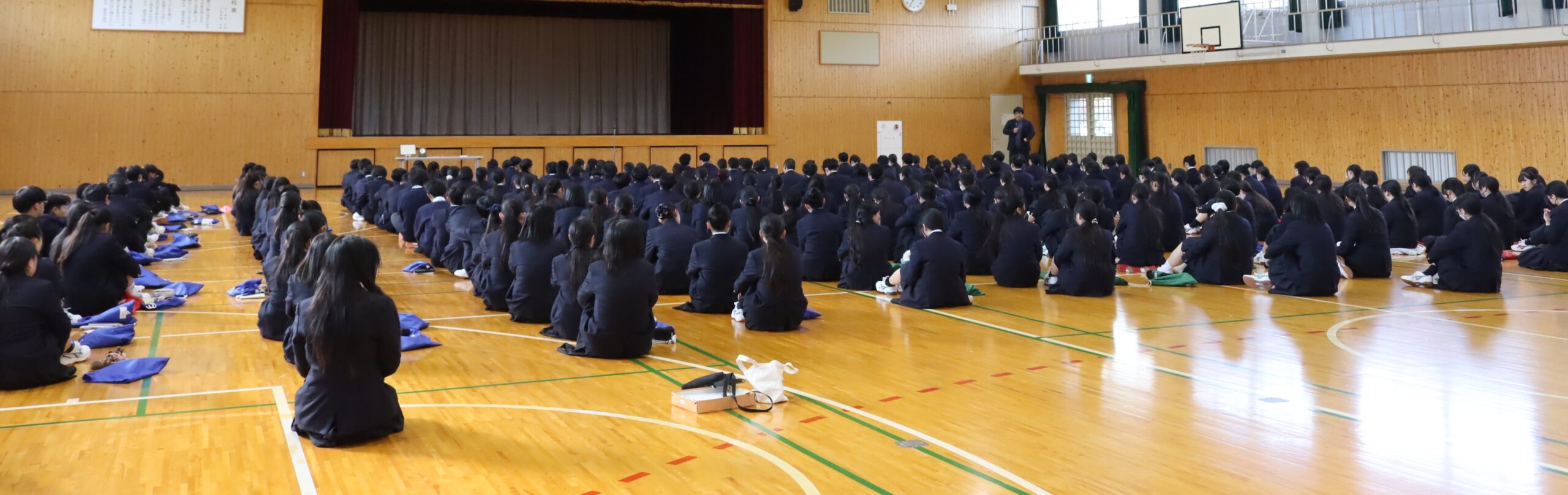 今年度2回目の商業科集会です。1年生から3年生の約240名が体育館に集まりました。