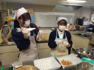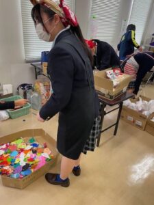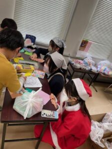 12月20日(土)のさいさい子ども食堂は「クリスマス会」でした。西高からは「魚釣りゲーム」を企画し、サンタクロースの衣装を着た生徒たちと一緒にゲームを楽しみました。塗り絵や折り紙コーナーも設けて、食べ終わった子どもたちと一緒に遊びました。釣った魚に応じて、子ども食堂からの素敵なクリスマスプレゼントを渡しました。