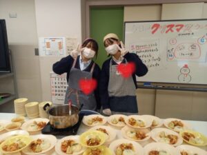 子どもたちがチョコペンでケーキをデコレーションしたり、ポテトサラダのツリーやお菓子のツリーなど工夫を凝らしたメニューは、手が込んでいて作るのは大変でしたが、美味しそうに食べている姿を見ると、疲れも吹っ飛び、楽しい時間を過ごすことができました。