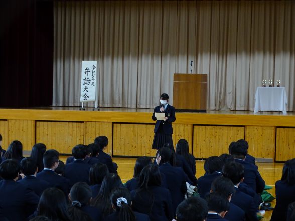 2年生を対象に弁論大会が開催されました。この大会には、各クラスで行われた予選を勝ち抜いた代表