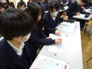 2年生の家庭科の授業では、昨年度に引き続き、今年度も「金融教育セミナー」を開催しました。