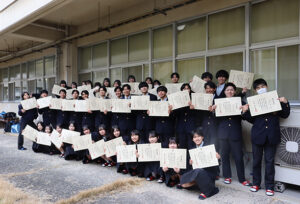 今年卒業した商業科3年生80名、日ごろから資格取得に向けて互いに切磋琢磨し合ってきました。
