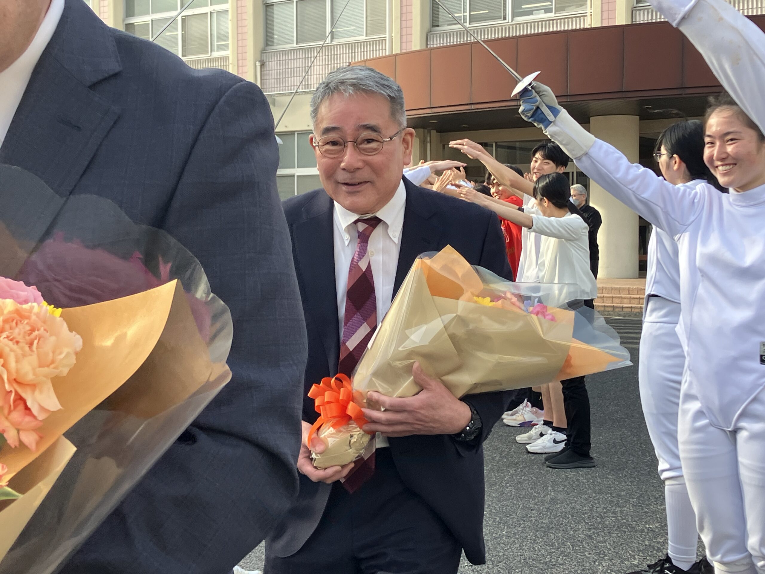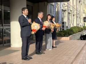 本日、退職される先生方の見送りの会を行いました。これまでのご尽力に感謝の気持ちを込めて、花束の贈呈や謝辞が述べられました。これまでの歩みを振り返る中で、先生方が残された足跡の一つひとつに思いを巡らせる、穏やかで心温まる時間となりました。長年にわたり本校の教育にご尽力いただき、心より感謝申し上げるとともに、これからのますますのご健勝とご活躍をお祈りいたします。
