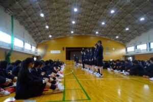 2・3年生と1年生が体育館に集合し、対面式を行いました。
