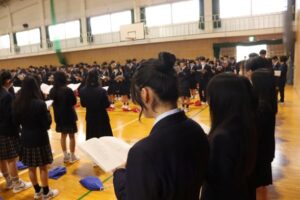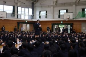 生徒会長はこれから始まる球技大会や秋桜祭に触れ、120周年を迎える本校をより良いものにしていきたいという思いが伝えられました。